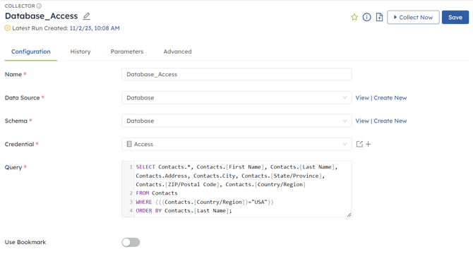 Once the Bookmark Field is set, every collection will save the value based on the latest run time. In the example above, the Bookmark is stored as a 'WHENMODIFIED' date of '05/17/2022 04:22:10'. The next time the Collector runs, it will only pull values with a different value, and then will update the Current Value field dynamically.