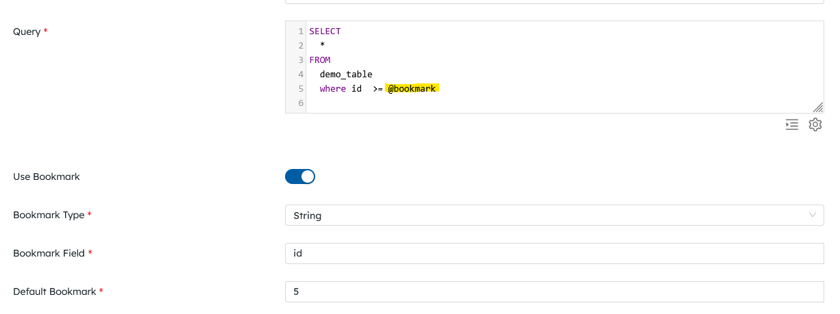 Bookmarks can be used on certain collectors to set a dynamic value each time the collector runs. A field from the collector source will need to be selected to be associated with the Bookmark function. For example, ‘WHENMODIFIED’ is a field in the Sage Intacct GL Detail object that can be used as a Bookmark: