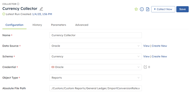 Create collector in DataBlend with Collector Type “Get Reports” and Absolute File Path to the report in Oracle Fusion.