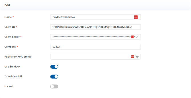 To obtain the Client ID and Client Secret, reach out to Paylocity Support.