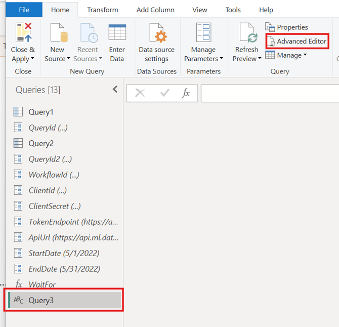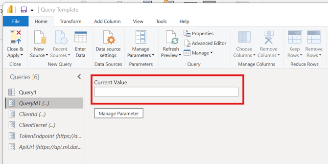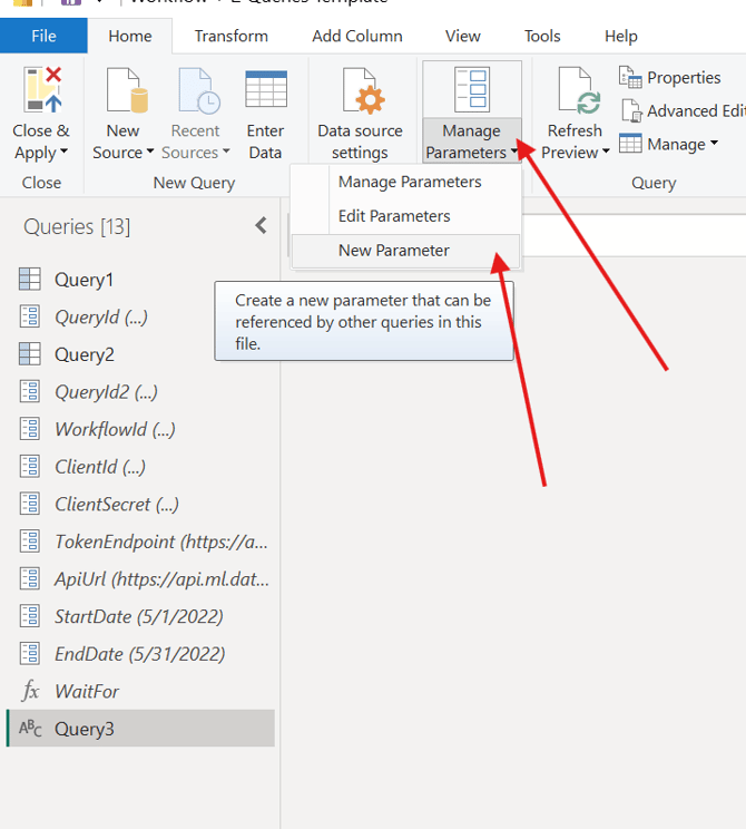 Make sure all parameters in the Queries column have values. Then click Close & Apply.