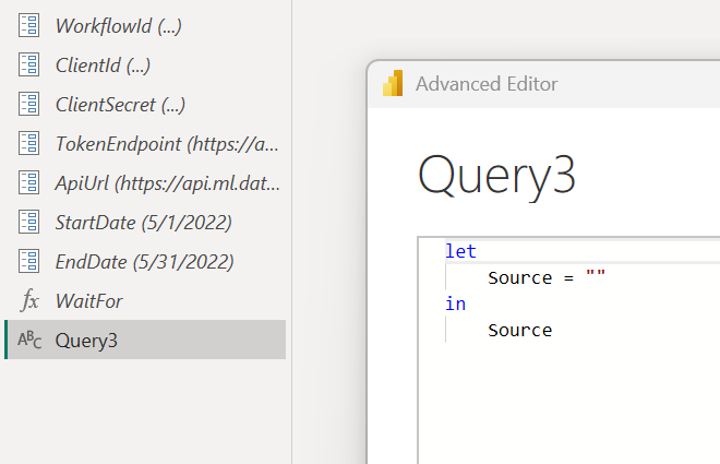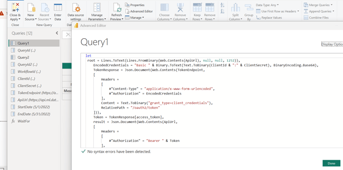 Fill in parameters for Queries, Workflow ClientID and ClientSecret the same way described above for a single query. Change StartDate and EndDate parameters as required.