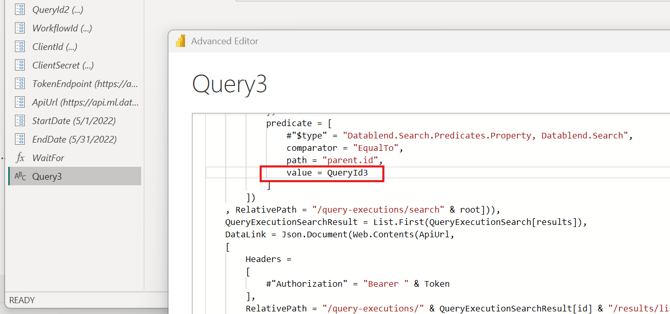 6. Copy/Paste script to Query 3 and change Value to the QueryId3 parameter.