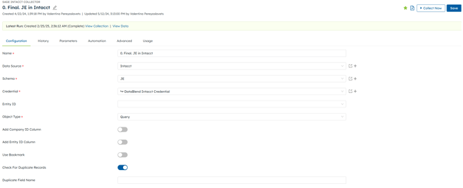 The History Retention field is used is how many days DataBlend will keep record of the collector runs. The Default is 180 days.